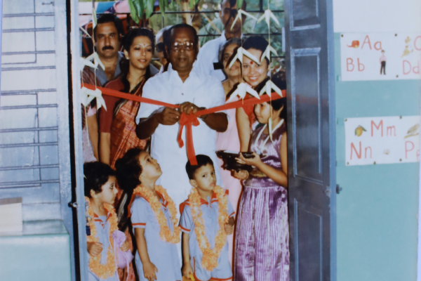 V. Emberumanar (Perumal Chetty & Sons) inaugurates the new classroom for the fledgling Lady Andal School