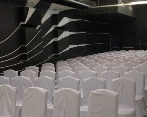 The fully furnished, 2600 sq.ft Concert Hall in the heart of the city is completely air conditioned. With close to 1200 member seating capacity, it also features a 200 person capacity black box experimental theatre with an outdoor performance area and 3 versatile training rooms.