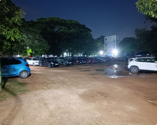 Large parking for approximately 200 Cars and 150 two-wheelers
